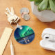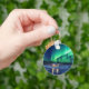 Nice keychain with beautiful Aurora borealis over winter cabin.