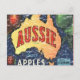 Aussie Apples from Tasmania is a vintage fruit crate label from 1933 . A map of Australia in the centre with red and green apples around it.