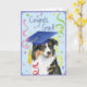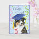 Congratulate your favourite graduate with a gift featuring a cute, happy Australian Shepherd graduate wearing a mortarboard amid a flurry of confetti.