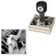 I use this stamp on paper, and on wood. So happy I ordered it. The archival ink pad included works very well with the stamp! Exquisite detail, & clean print.