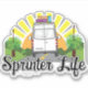 Sprinter Van driving on the road through the Aussie landscape among Grass trees.
