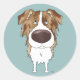 Adorable big nosed Australian Shepherd on a sticker. Background colours can be changed. Just click on the Customize It button.