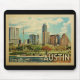 Austin Texas design in Vintage Travel style featuring a downtown skyline view.