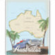 Australia map vintage travel poster with a beautiful old classic car.