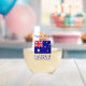 Personalized stemless wine glass with the Australian Flag and the word AUSTRALIA underneath. Add your name in blue letters, above the flag, for a personalized touch or a gift. The Australian flag shows the Union Flag in the upper left area and sports the Southern Cross constellation all on a blue background. Great housewarming gift for the home bar.