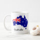 Show everyone your love for the country of Australia with this unique coffee mug featuring a map of Australia filled in with the colours of the Australian flag. The font and colour of the text and the background colour of the product can be changed to fit your preference.