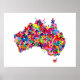 A map of the Australia made up from colorful butterfly silhouettes on a white background