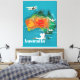 Australia Map Travel poster. Australian cartoon vacation poster.