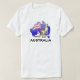 Australia is the smallest continent; between the South Pacific and the Indian Ocean. A kangaroo is superimposed on the flag filled map of Australia.