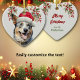 On the front of this Holiday ornament is the image of a gorgeous Australian Cattle Dog. The dog wears a red and white Santa Claus hat, and a holly and red berry half wreath hangs above him. On the back is a repeat of the holly wreath, and red text that says MERRY CHRISTMAS". There are additional text fields for you to customize. Be sure to see other Blue Heeler dog images, as well as products, at Dog Village.