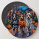 Adorable Australian Cattle Dogs dressed in playful Halloween costumes carry pumpkin buckets while trick-or-treating under the moonlit sky. This festive design highlights the breed’s speckled coat, intelligent eyes, and energetic spirit, perfectly capturing the spooky yet fun atmosphere of Halloween night. A lively celebration for dog lovers and Halloween fans alike.