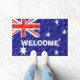 Flag of Australia design smooth fleece doormat for indoors or covered outdoor areas. You can customise this doormat with any text of your choice. Should you require any help with customising then contact us through the message link on this page. Australian flag design doormat.