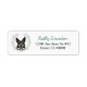 A portrait of a beautiful black and tan Australian Kelpie Dog inside a pale green leaf watercolor eucalyptus wreath is the feature on the left side of these return address labels. Your custom text in green and black is at the right. Perfect for anyone who loves a hard working Kelpie.