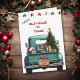 A teal blue pickup truck carries a decorated Holiday tree and gift packages on the front of this cute Christmas card. A black and tan Australian Kelpie Dog looks out from the tailgate. A rustic wooden sign on the back bumper says "Christmas Cheer". At the top of the card is a string of Holiday lights, and custom text which currently says "From Our House to Yours". The inside of the card has more text fields for you to customize.