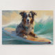 Australian Shepherd Beach Surfing Painting Jigsaw Puzzle