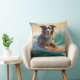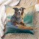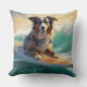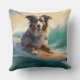 Australian Shepherd Beach Surfing Painting Throw Pillow