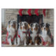 An enchanting scene captures the essence of coziness and holiday spirit as furry companions adorned in Santa Claus hats gather around a crackling fireplace. The warmth emanating from the hearth creates a snug atmosphere for these adorable canines, while festive stockings hang in the background, enhancing the merry ambiance. The charming illustration portrays a timeless image of companionship and festive joy, perfect for celebrating the holiday season with a touch of canine charm.