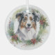 Australian Shepherd Christmas Wreath Festive Pup Glass Ornament
