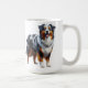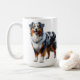 artistic illustration of a tricolor Australian Shepherd dog happily standing
