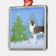 Australian Shepherd Dog Decorating Christmas Tree Metal Ornament