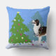 Australian Shepherd Dog Decorating Christmas Tree Throw Pillow