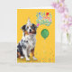 Australian Shepherd Dog in a Party Hat Birthday Card