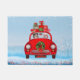 Australian Shepherd Dog In Car With Santa Claus Doormat