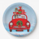 Australian Shepherd Dog In Car With Santa Claus Paper Plate