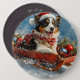 Australian Shepherd Dog in Sledge Chriistmas 6 Inch Round Button