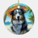Australian Shepherd On Beach dog lover summer gift Ceramic Ornament