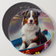 Australian Shepherd on Paddle: A Scenic Adventure 6 Inch Round Button