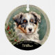 An adorable Australian Shepherd puppy poses for her first Christmas. Name, year, and photos are easily personalized. Don't have a photo of your loved one's new Australian Shepherd? Not to worry, both sides of this ornament are already prepared with pictures for gifting.
