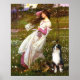 Windflowers by John W. Waterhouse (1903), adapted to include a tri colored Australian Shepherd.