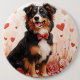 Australian Shepherd with Roses - Valentine's Day 6 Inch Round Button