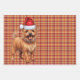 An adorable Australian Terrier dog is ready for the holiday season with holiday hat. This cute Christmas dog is paired with a red and gold holiday plaid on this set of gift wrap for the dog lover.
