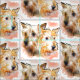 Two watercolor painted heads of the Australian terrier featured on this fabric in an alternating repeating pattern, each set of heads is about 4 by 4 inches