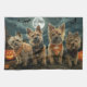 Unleash the spooky spirit with this eerie Halloween design featuring a pack of dogs under a dark, moonlit sky, surrounded by flying bats and glowing pumpkins. Perfect for those who love a touch of frightful fun with their furry friends!