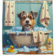 Add a splash of humour to your bathroom with this fun shower curtain featuring a playful dog enjoying a bubbly bath! This lighthearted design is perfect for dog lovers who want to bring a touch of joy and whimsy to their space. Made from high-quality fabric, it offers durability and style while keeping your bathroom dry.