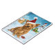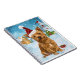 his festive design captures the joyful spirit of the holiday season, featuring an adorable pup wearing a Santa hat. The cat is nestled in a winter wonderland, complete with a snowman, a decorated Christmas tree, and beautifully wrapped presents. Snowflakes gently fall, adding a magical touch to the scene, while the vibrant colours of the holiday decorations create a warm and cheerful atmosphere.