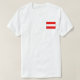 The front of this t-shirt bears a small Austrian flag with its familiar red and white bands, while the back displays a relief map of Austria. Available on t-shirts, sweatshirts, polos, long-sleeves and more.