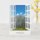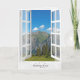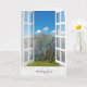 Open window and sheer curtains view of Austrian Alps mountain scene for thinking of you.