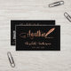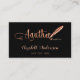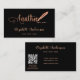 An elegant business card on a black background and a rose gold feather pen. Elegant hand lettered style script. Personalize and add Your name, title, contact info and your own QR code to your website address.