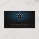 This author business card features your monogram letter within a chrome circle. Your name and title appear below this monogram letter and your contact details appear on the lower edge of the card. The background is a dark blue damask pattern, with a subtle gradient that appears lighter in the centre of the card. Perfect for publishing, printing, literature, literary arts, artistic, writing general themes