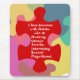 Autism Acrostic features a piece from a jigsaw puzzle against an assembled puzzle, with the text. "I love someone with Autism who is: Amazing, Unique, Terrific, Interesting, Special, Magnificent"