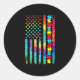 Autism American Flag Tee Tie Dye Autism Awareness Classic Round Sticker