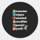 Autism in fun colourful colours makes acronym that says Awesome Unique Talented Incredible Special Myself with puzzle piece awareness ribbon for Autism Awareness Month in April. Perfect for autistic kids and adults and Aspies with Asperger’s Syndrome.