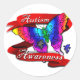 Original drawing by Sandra Gale of a butterfly made of puzzle pieces and coloured in rainbow shades, surrounded by a red banner. This is a great design for Autism Awareness, especially for the month of April, which is Autism Awareness month.