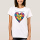This women's white t-shirt features a meaningful Autism Awareness design. At the top, the phrase "Autism Awareness" is displayed in a bold and clear font. The central graphic is a heart made up of colourful puzzle pieces, symbolizing the diversity and uniqueness of individuals on the autism spectrum. Inside the heart, the words "Different Not Less" are prominently featured, emphasizing acceptance, inclusion, and the value of neurodiverse individuals. The combination of bright colours and a heartfelt message makes this t-shirt both visually appealing and a strong statement of support for autism advocacy.