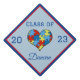 Autism Awareness Graduation Mortar Board Cap tassel topper has a heart filled with puzzle pieces. Edge of topper has a red and a blue stripe going around. Personalized with the year of graduation and the graduates name. You can change the colour and the font of the writing by using the personalize button and then the customize it further button. If you need help, just send me a message here and I'd be happy to help!