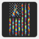 Autism Awareness Shirt American Flag Ribbon Puzzle Square Sticker